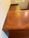Antique English Georgian Flame Mahogany Executive Desk With Side Return. Burled wood inset top with cross banding.