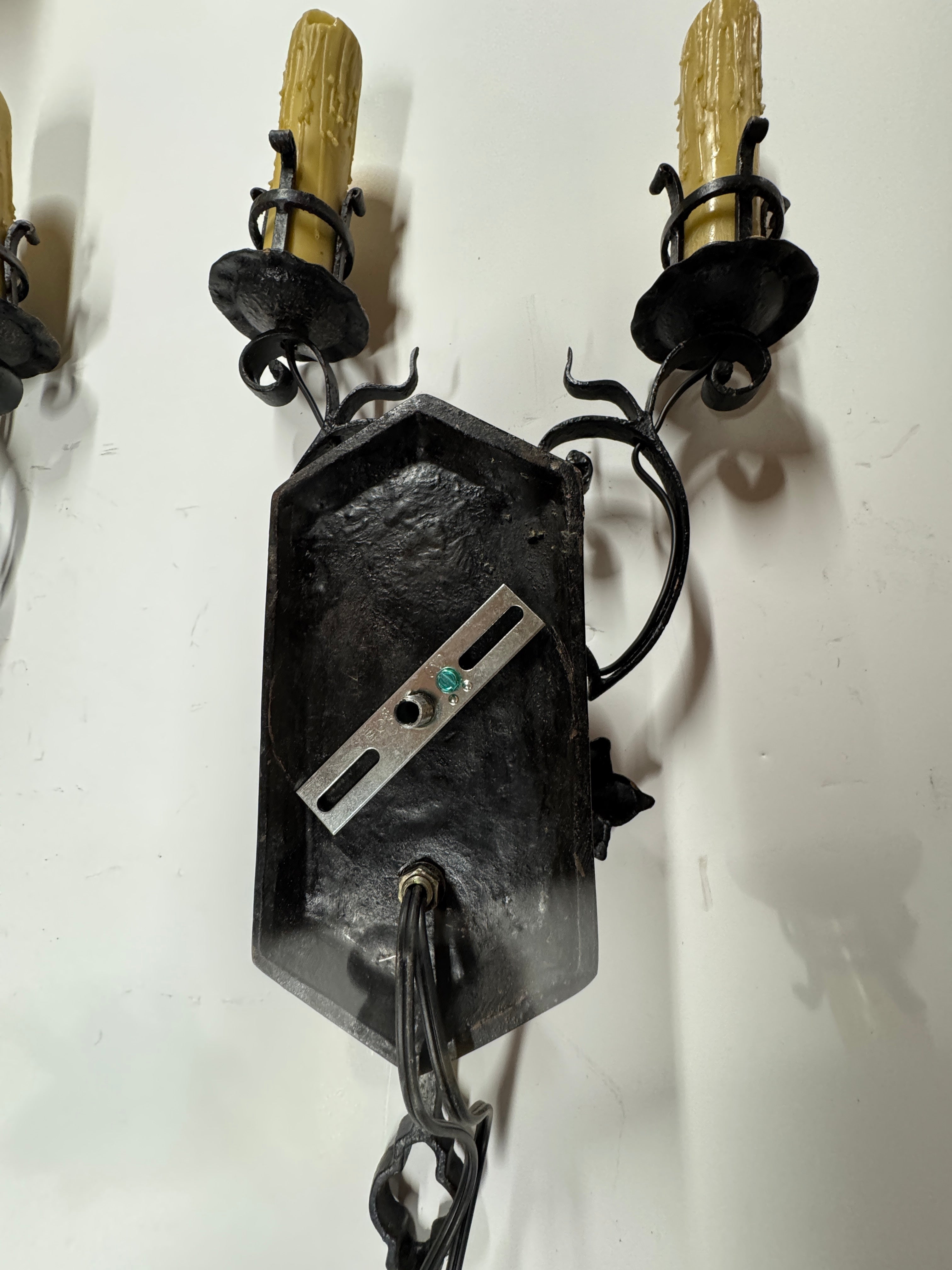 AL3-019: 20th Century Lighting Pair of Spanish Colonial Sconces Las Gardenias Distressed Painted Iron Finish