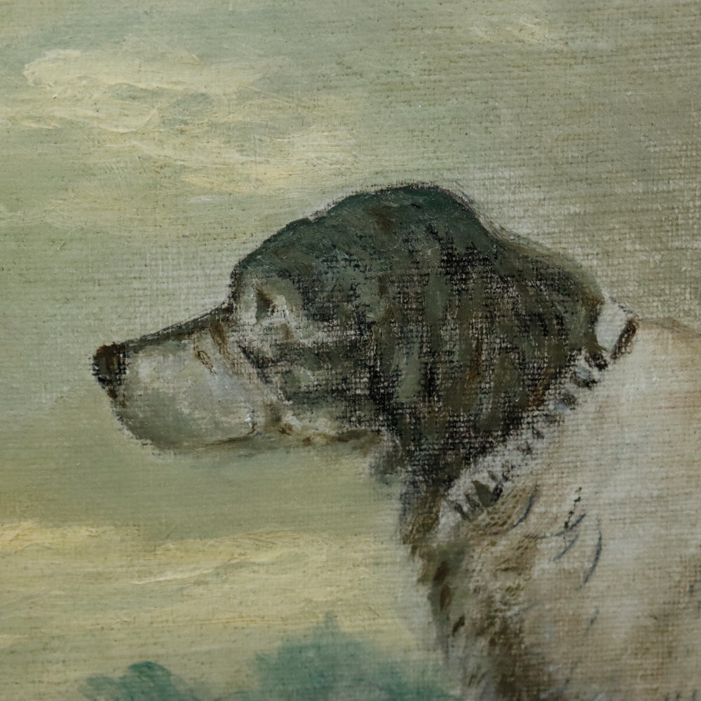 AW424: Antique American School Dog Portrait Oil Painting