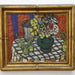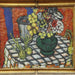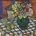 Sacha Moldovan Still Mid Century Modernist Life Vase of Flowers on Checkered Table Cloth Oil on Canvas. Signed stretcher bar verso. Dated "1963" and numbered "47" canvas verso. Original Frame.