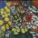 AW360: Sacha Moldovan Still Life Vase of Flowers on Checkered Table Cloth Oil on Canvas Circa 1963