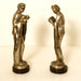 Mid Century Modernist Pair of Polynesian Figure Statues. Worn silver plated finish over electro-formed copper or bronze. Most likely made by one of these companies that made electro-formed objects: Armor Bronze, Pompeian Bronze, Marion Bronze, Kathodian Bronze Works, LaFrance Bronze Works, Galvano Bronze or Robert St. Croix
