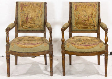 AF2-049: Antique Early 19th Century French Louis XVI Petit Point Upholstered Bergeres