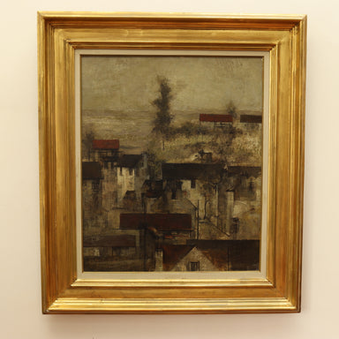 Abstract Post Impressionist European Village Landscape Painting Signed Taylor lower left. Oil on canvas laid to masonite board. Circa Mid 20th Cent...