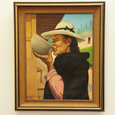 John R Grabich "Boy With Drinking Glass" Oil on Canvas Mounted to Board Painting. Signed lower left. Vintage tag verso identifies artist and title....
