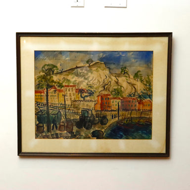 TITLE: FRAME: COMMENTS: Late 19th Century watercolor painting depicting a seaside town.
