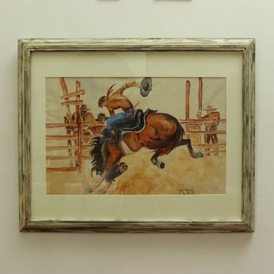 John Boswell, American illustrator "The Rodeo" - Watercolor Circa 1943 Dimensions: Sight 13 3/4" x 21"; Frame: 22 7/8" x 27 7/8"