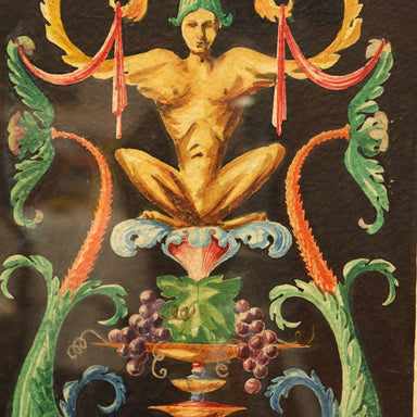 Neoclassical Pompeian Ornament Watercolor on laid paper Signed R. Mobay Early 20th Century Dimensions: Sight 27" x 9 1/2"; Frame 28 1/2" x x11"
