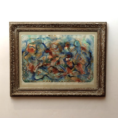 Razel Kapustin Abstract Watercolor on Paper. Signed and dated 1947 lower right Dimensions: Sight 14 5/8" x 21 1/4"; Image 14" x 20 1/4"; Frame 20 1...