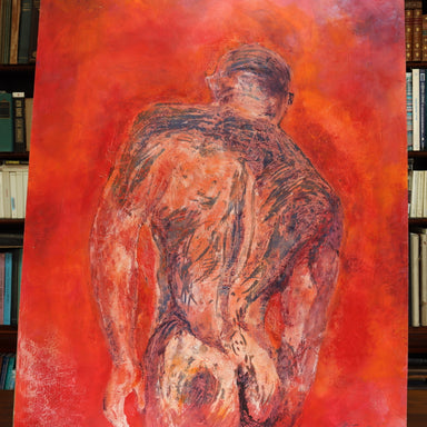 Modernist Male Nude Figure Expressionist Gouache on Paper. Indistinctly signed lower right. Circa 1991. Dimensions: Sight 49" x 36 5/8"