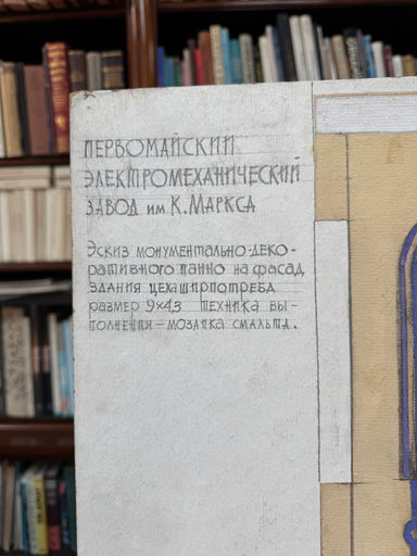 Soviet Era Avant Garde Architectural Rendering For a Monumental Decorative Mosaic Glass Panel for the facade of the Pervomayski Electromechanical P...