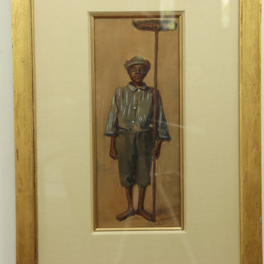 Early 20th C Pastel on Paper "Street Sweeper" by Aurelia Wheeler Reid Dimensions: Sight 12 1/2" x 5"; Frame: 22" x 14 5/8" Comments: Aurelia Wheele...