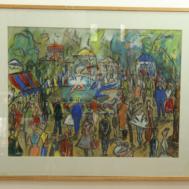 Phillippe Oates, famed Los Angeles interior designer "Carnival" Mid 20th Century Pastel on Paper Dimensions: Sight: 19 1/4" x 25 1/2"; Frame: 25 7...
