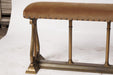 AF2-023: ANTIQUE LATE 19TH CENTURY CAST BRASS FIRESIDE BENCH W/ UPHOLSTERED SEAT