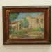 Lola MacDonald Sleeth (1860 - 1951) Mission San Juan Capistrano Oil on Board. Signed lower left frame verso "L MacD Sleeth 1923" Circa 1923. Original frame retaining a portion of the exhibition tag when the painting was exhibited with the Society of Washington Artists.