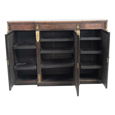 AF3-004: ANTIQUE EARLY 19TH CENTURY ENGLISH REGENCY ROSEWOOD CONSOLE CABINET W/ GILT METAL MOUNTS