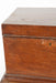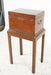 Late 18th Century English Georgian Style Mahogany Tantalus on Stand. The hinged lid opening to a damask lined interior fitted with dividers and ten gilt-decorated glass bottles.Tantalus is not attached to stand; Dimensions: 18" wide; 13" deep; 10" high; 34-1/2" high overall.