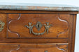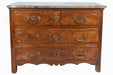 Antique Late 18th Century Louis XIV Style French Walnut Chest of Drawers With Rouge / Grey Marble Top Over Two Short Drawers and Two Long Drawers. Dimensions: 46 inches wide; 23 inches deep; 33 inches high