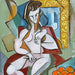 AW311: Anton Brzezinski Cubist Oil on Board Painting Woman With Oranges Circa 2006
