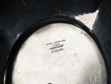 1940s Era Hand Hammered Sterling Silver Plate by Georg Jensen Inc., U.S.A., quatrefoil shape with raised swirled ridges, maker's mark and 'Handwrou...
