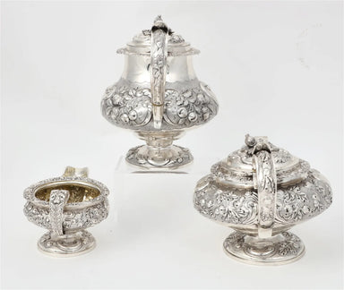 A Circa 1825 George IV Silver Partial Tea and Coffee Service - Napthali Hart, London - Comprising a teapot, a coffee pot and a cream jug. The cof...