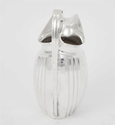 Baroque style silver water pitcher, possibly .800 silver content, dated 2006, the ribbed melon form, 8"h