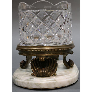 Early 20th Century continental crystal centerpiece, of oval form with pressed geometric detail above the shell form supports resting on the marble ...