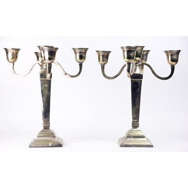 A pair of Sheffield style silver plate candelabra, each having five lights, 15"h