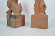 Late 19th Century pair of Chinese terra cotta foo lions - each on an integral base, with single candle holder; Dimensions: 5-1/2 " wide; 8 "deep; 15" high
