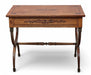 Antique Charles X Paint Decorated Burlwood Writing Table  Late 19th Century with pull out writing slides on each end.