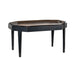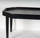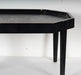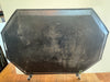 Antique English Tole Tray With Hand Painted Fox Hunt Scene Early 19th Century on a later stand for use as a coffee table. The tray, in remarkable condition, is English Regency and likely started life as a tea table fitted to a taller stand. This stand is likely mid 20th Century obviously designed for coffee table height.