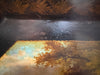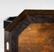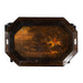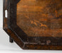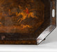 Note: The hand painted tray surface has been restored. Several layers of a heavily soiled shellac were removed to reveal the original hand painted fox hunt scene in remarkable condition. A layer of varnish was applied to protect the tray for future use. Both before and after photos are displayed.