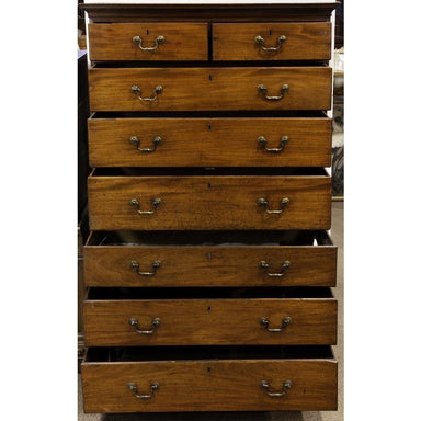Early 19th Century Georgian mahogany chest on chest, having a molded top above the nine graduated drawers with a pull out tray in the middle, and r...