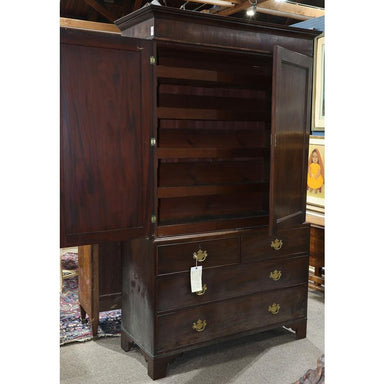 Antique George III Mahogany Linen Press Late 18th Century Dimensions: 80 1/2" high x 50 1/2" wide x 24" deep Provenance: From the Antique Collecti...
