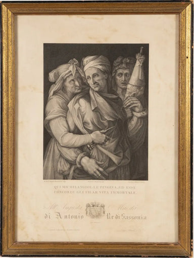 TITLE: The Three Fates Early 19th Century engraving by Luigi Bari of Francesco Salviati's Painting of the Three Fates (1545, Florence, Palazzo Pi...