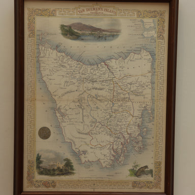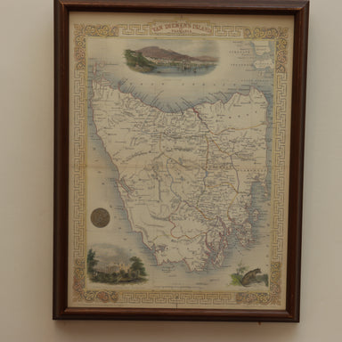 Later 20th Century Re-Printed Engraving of J. Rogers Map of Van Diemen's Land "Tasmania" Dimensions: Sight: 14" x 10 5/8"; Frame 15 1/4" x 11 3/4"