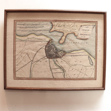 Antique Later Engraving of a 17th Century Hand Colored Engraved Map of the City of Amsterdam Dimensions: Sight: 10" x 13"; Frame 11" x 13 7/8"