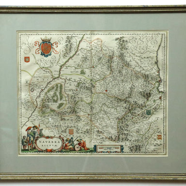Willem Janszoon Blaeu Navarra Regnum Colored Engraving Map Circa 1635 Dimensions: Sight 16 1/2" x 19 3/4"; Frame 23" x 26 3/4" COMMENTS: Circa 1635...