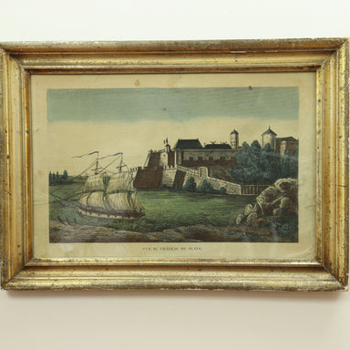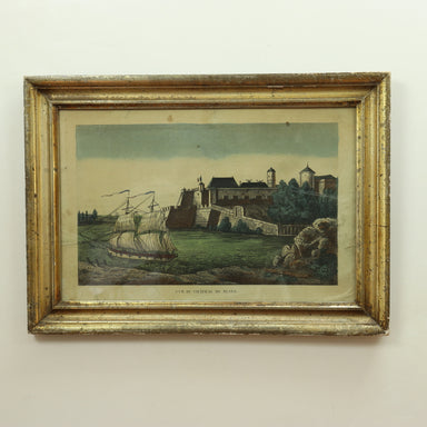 18th Century Hand Colored Engraving - "VUE DE CHATEAU DE BLAYE" - Printed Paris - Basset, circa 1750 - 1800. Titled lower center. Period antique wa...