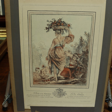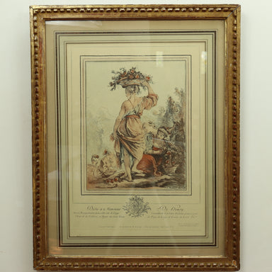 19th Century Hand Colored Copper Engraving of original painting by French Artist Francis Boucher (1703 - 1770) Dimensions: Sight: 16" x 11 3/8"; Fr...