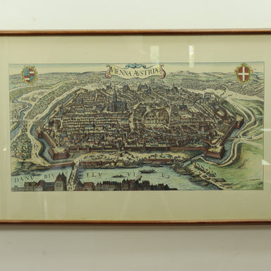 Later Hand Colored Engraving of 17th Century Vienna Austria C 1950. Note: Plate impression is present Dimensions: Plate Size: 11 1/8" x 21 5/8"; Fr...