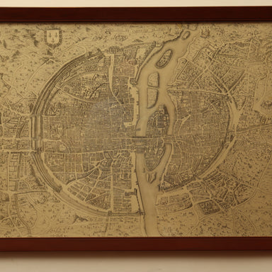 18th Century French Etching by Guillaume Dheulland - Titled Plan en Perspective, De La Ville De Paris telle qu'ell etoit sous le Regne de Charles I...