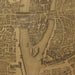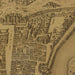 The text at the left details the history of the city and the layout during the 16th-century, the time during which the map purports to show. Excerpts from the description read as follows: