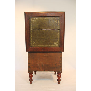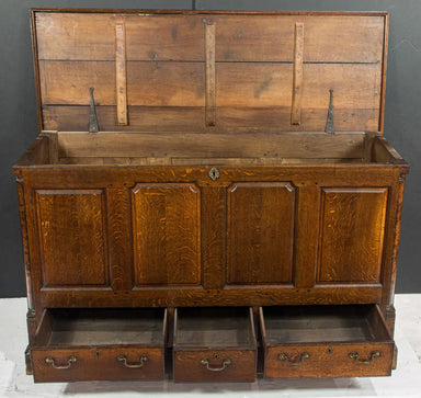 Late 18th century English Georgian Quarter Sawn Oak With a Hinged To Above the Paneled Three Drawer Case and Rising on Bracket Feet. Dimensions: 39...