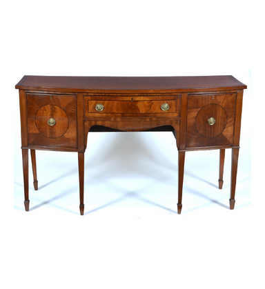 Antique Early 19th Century American Federal Hepplewhite Mahogany Sideboard with a center drawer flanked by two side compartments Dimensions: 35" ...