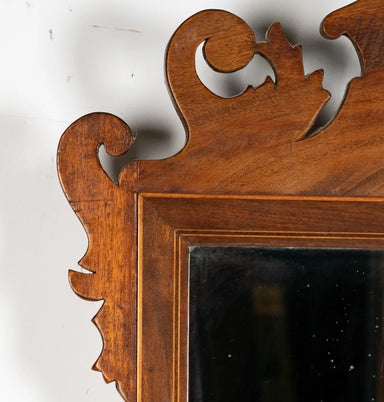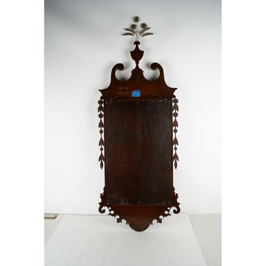 Antique Early 19th Century American Federal Chippendale Style Mahogany Framed Mirror with pierced and gilt crest Dimensions: 37" x 19 1/4"