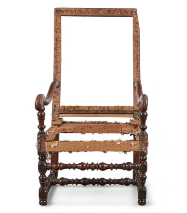 Antique Circa 1700's French Henry IV Walnut Armchair Frame Dimensions: height 45 1/2" (116cm); width 25" (64cm); depth of seat 19" (48cm)