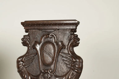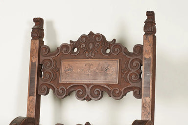 Antique Pair Carved Walnut Renaissance Revival Sgabello Chairs 19th Century Dimensions: 40 1/2" x 13 1/2" x 18"