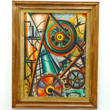 Jacob Seldin WPA Industrial Scene Oil on Board. Jacob Seldin was an active painter in New York in the mid 20th Century. This painting is executed i...