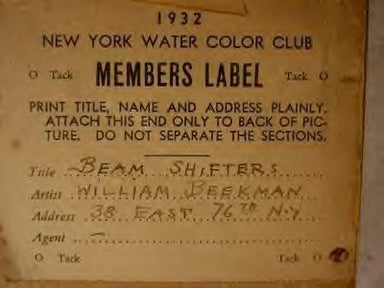 TITLE: Beam Shifters FRAME: COMMENTS: William F. Beekman, American 20th Century. This watercolor is signed in the lower right corner and is also ...